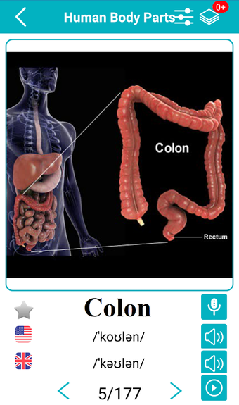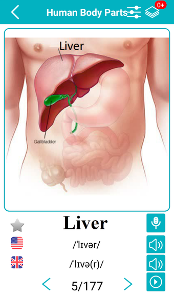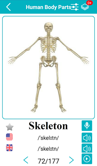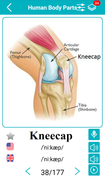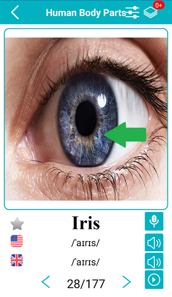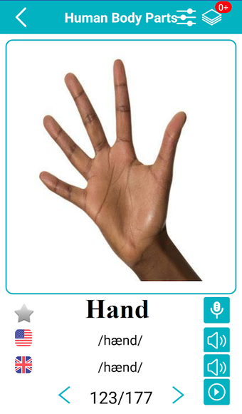 Body Parts Name and Picturesは、英語の語彙を学ぶための新しく楽しい方法を提供するAndroidアプリです。このアプリは、単語を説明するために画像を使用し、アメリカ英語とイギリス英語の音声サポート、ネイティブスピーカーによる音声記号と発音録音を提供しています。